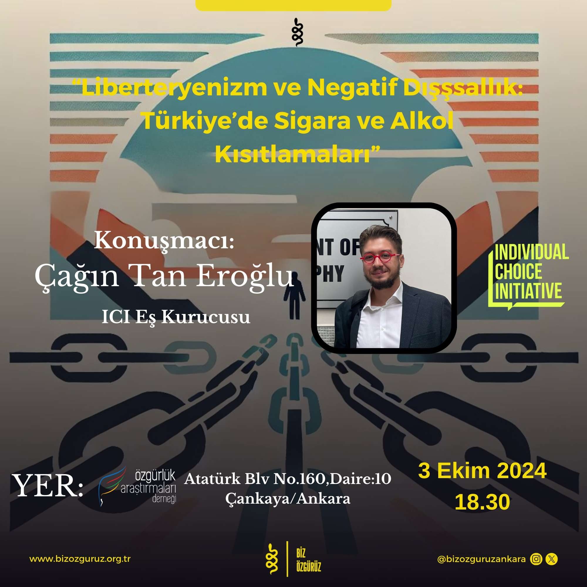 Biz Özgürüz Hareketi olarak “Liberteryenizm ve Negatif Dışsallık: Türkiye’de Sigara ve Alkol Kısıtlamaları” konulu seminerimizi baÅŸarıyla gerçekleÅŸtirdik.