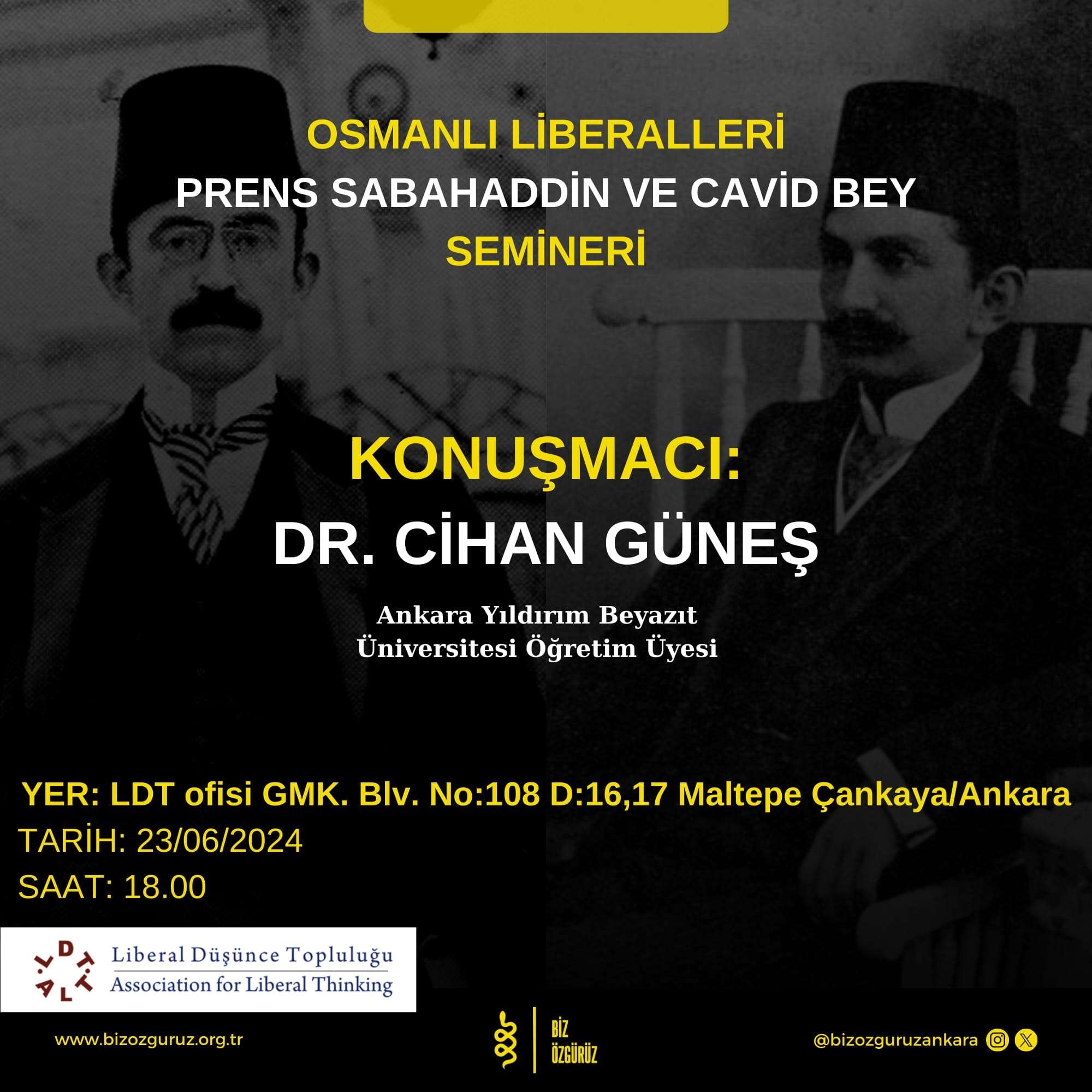 Bu kapsamda düzenlediÄŸimiz seminerimizde, deÄŸerli akademisyen Dr. Cihan GüneÅŸ Hocamız ile birlikte “Osmanlı Liberalleri: Prens Sabahaddin ve Cavid Bey” konusunu ele aldık.